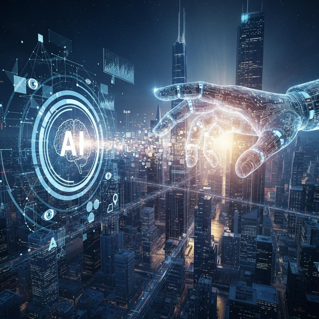 Alt text: Futuristic AI visual representing next-generation assistance, showing how data empowers support