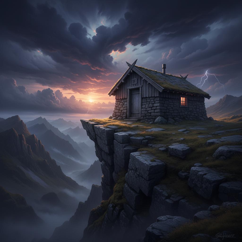 Remote mountain hut perched on a cliff, ideal for adventure seekers looking far beyond the tourist grid.