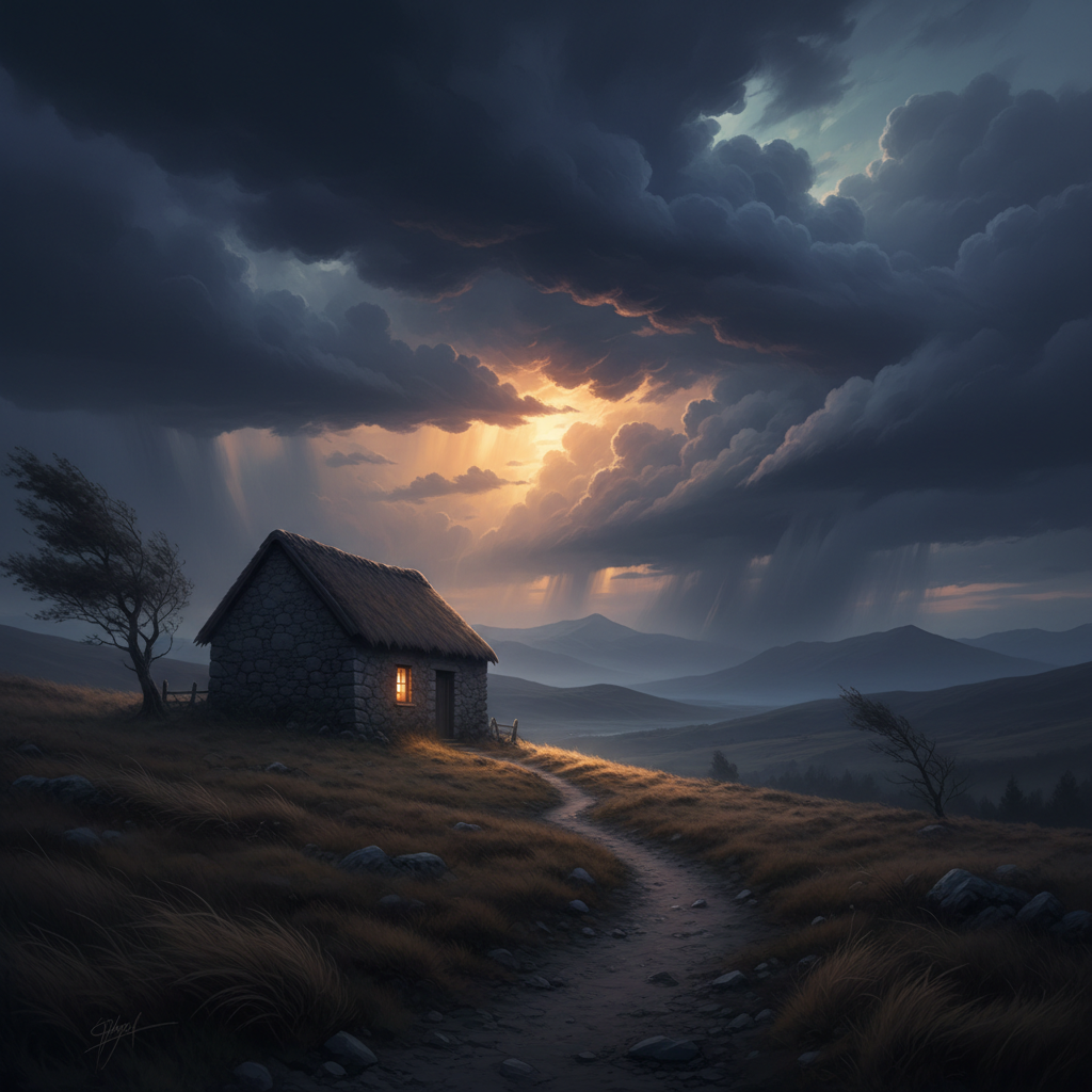 Lone cottage under a dramatic sky, a metaphor for the unique journey and choices of cottage living.