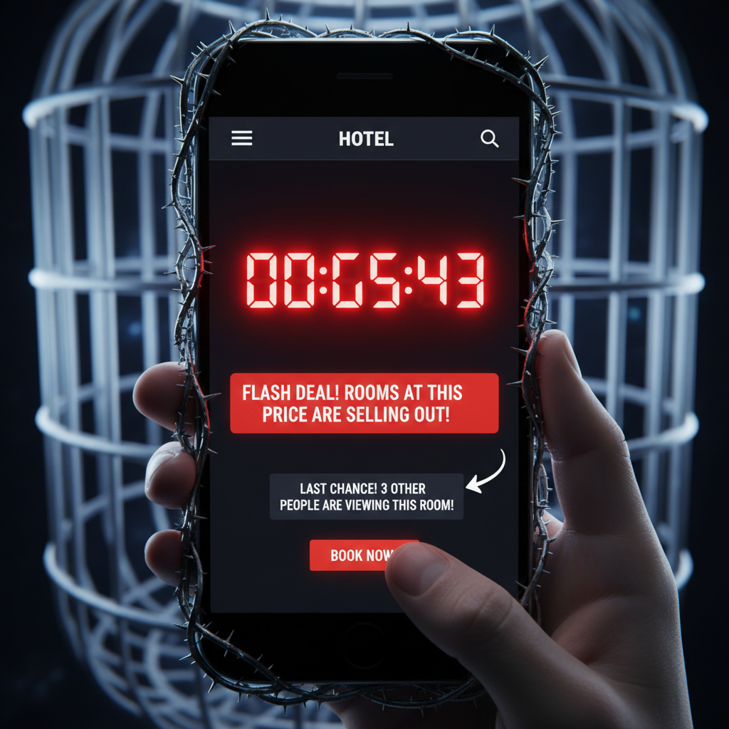 Nothing spikes cortisol quite like a red "2 rooms left!" or a ticking clock. Research by the UK’s Competition and Markets Authority confirms that urgency cues increase conversion rates by up to 30%, but do little for actual customer satisfaction. These are psychological traps designed to override your rational thinking, pushing you into bookings that benefit the platform’s bottom line—not your travel experience.