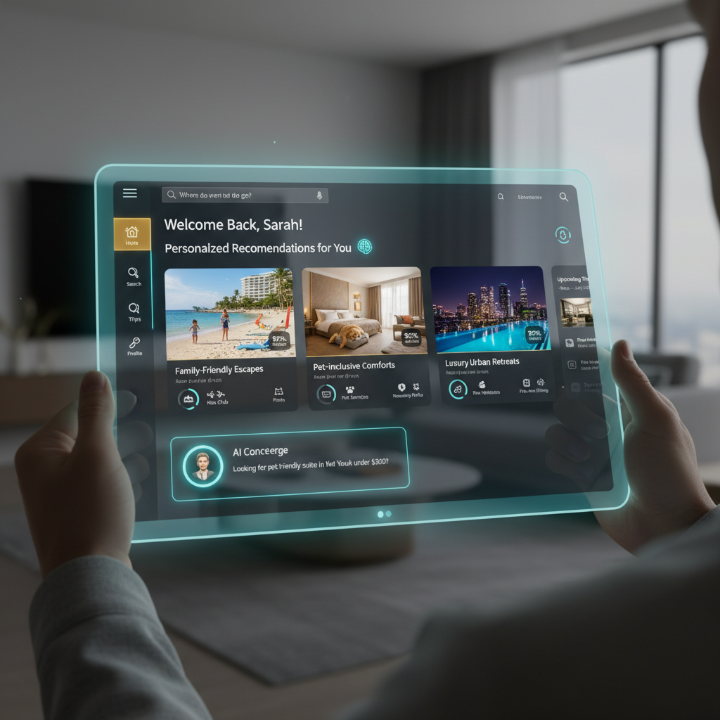 Automated content suggestions, upsells, and interactions based on real-time guest data—think Netflix-style “because you stayed here, you’ll love this” for hotels.