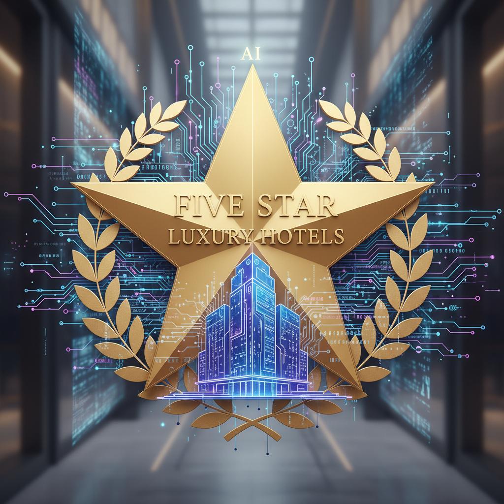 Alt text: Five-star hotel badge cracking with AI digital data streams, illustrating hotel quality ranking breakdown