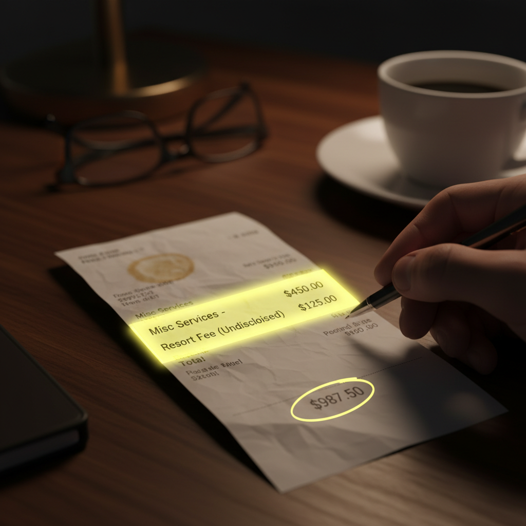 - Resort fees: Flat daily surcharges for amenities, mandatory even if unused.