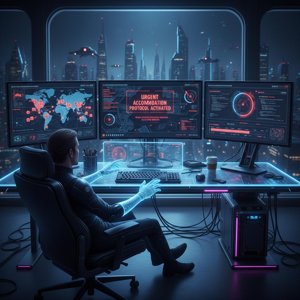 Photo: AI analyzing urgent accommodation data in real time, highlighting the technological backbone of rapid stay booking.
